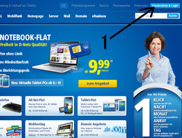 まずはwww.1und1.de のサイトで現れる画面の右上、1 の矢印の先にあるKundenshop & Login をクリックしてください。