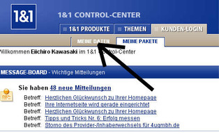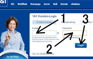 まだパスワードを設定されていない場合は、1&1 のカスタマーセンターに電話をしてパスワードをお求め下さい。Tel.: 0721-9600