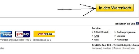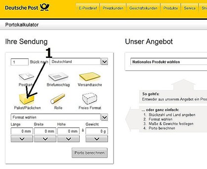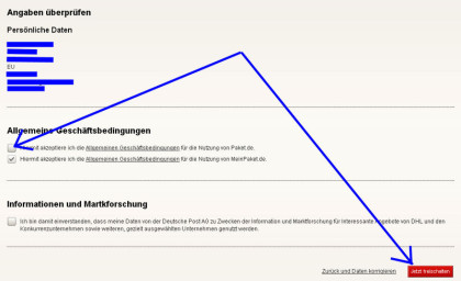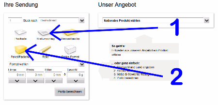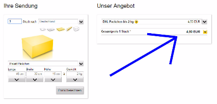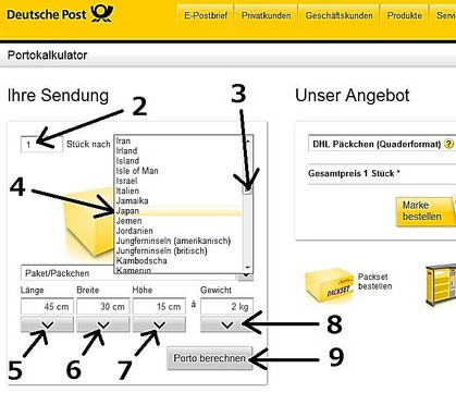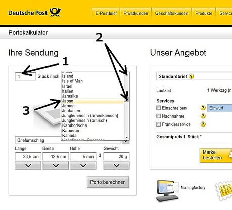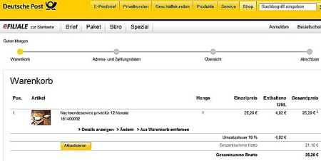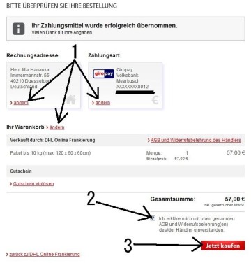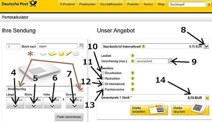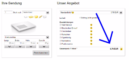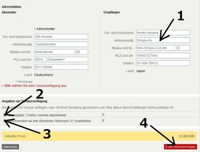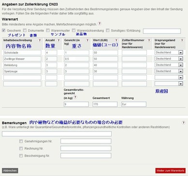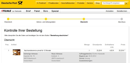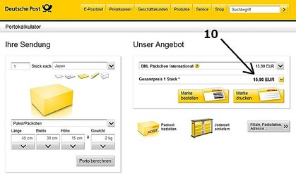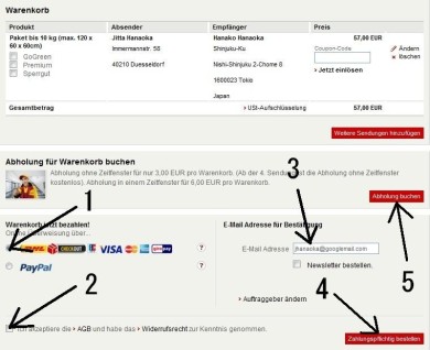 右下のJetzt Kaufen(購入ボタン)をクリックして購入完了です。次に出てくる画面で印刷したものを郵便局に持っていって小包と一緒に手渡します。