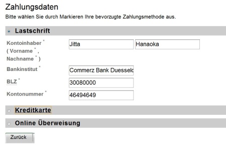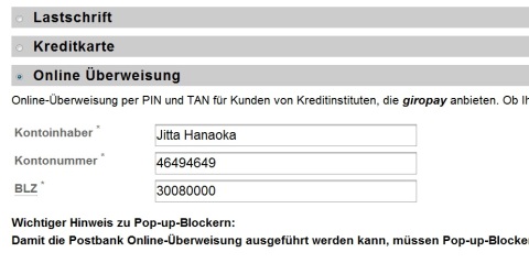 Online Überweisung = オンラインによる振込み