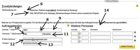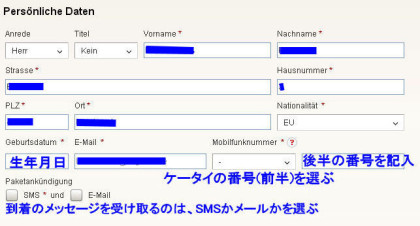 - Herr(Mr.)かFrau(Ms.) かを選びます。