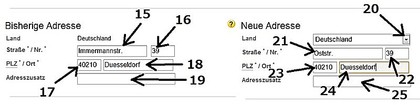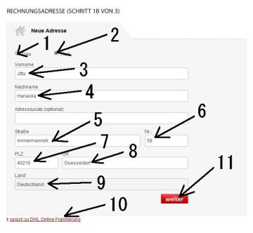 | Anschrift | 住所 | 通り名+番地 |