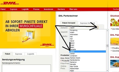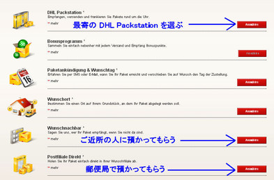 * 荷物を受け取りたいPackstation 探しはこちらのサイトにて。出てくるページの上から3番目、Packstaion をクリックした後、PLZ(ドイツの郵便番号) を入力、案内される中で最寄のPackstation(番号) あるいは郵便局(番号)を選びます。