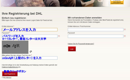 - DHLの諸条件を認めるクリックをします。